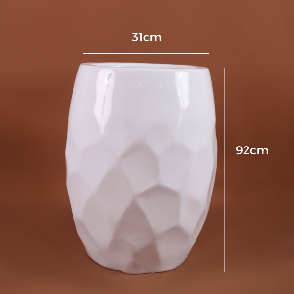 Prepare to be mesmerized by the union of form and foliage with our “Facet Fiberglass Planter.” Standing at a graceful 60cm (approximately 23.6 inches) in height, this planter transcends the ordinary, offering an artistic canvas for your botanical creativity.